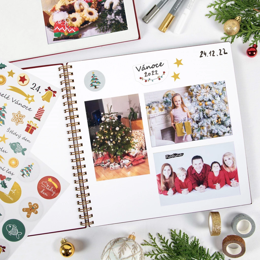 Tip: Pokud nechceš nic vymýšlet, zvol naše vánoční fotoalbum + sadu 5 archů vánočních samolepek. Máš tak všechno v jednom a můžeš se rovnou pustit do tvoření.