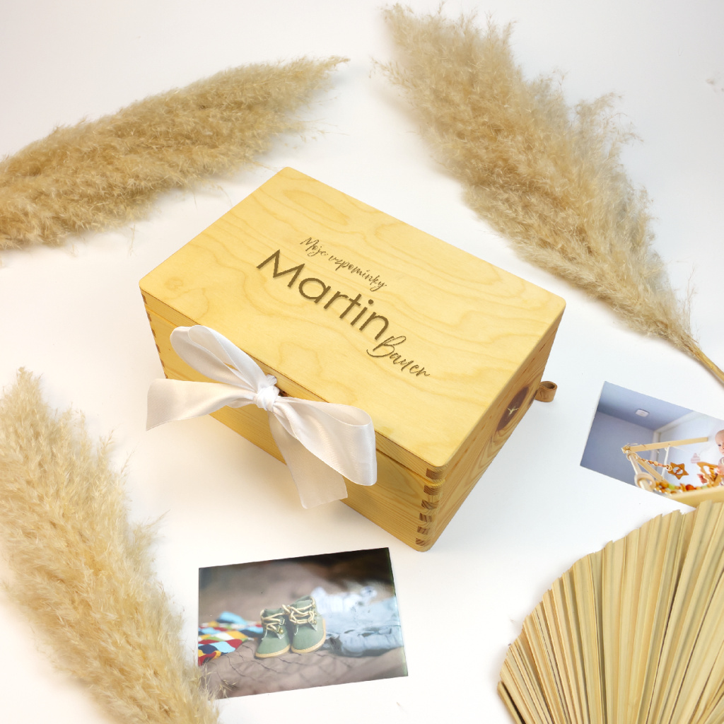 Dřevěná krabička na vzpomínky s gravírováním jména je víc než jen úložný box. Je to místo pro fotografie, dopisy a osobní poklady, které mají pro svého majitele skutečný význam. Motiv Moje vzpomínky dává celé krabičce ještě hlubší emoci a dělá z ní krásnou osobní památku.