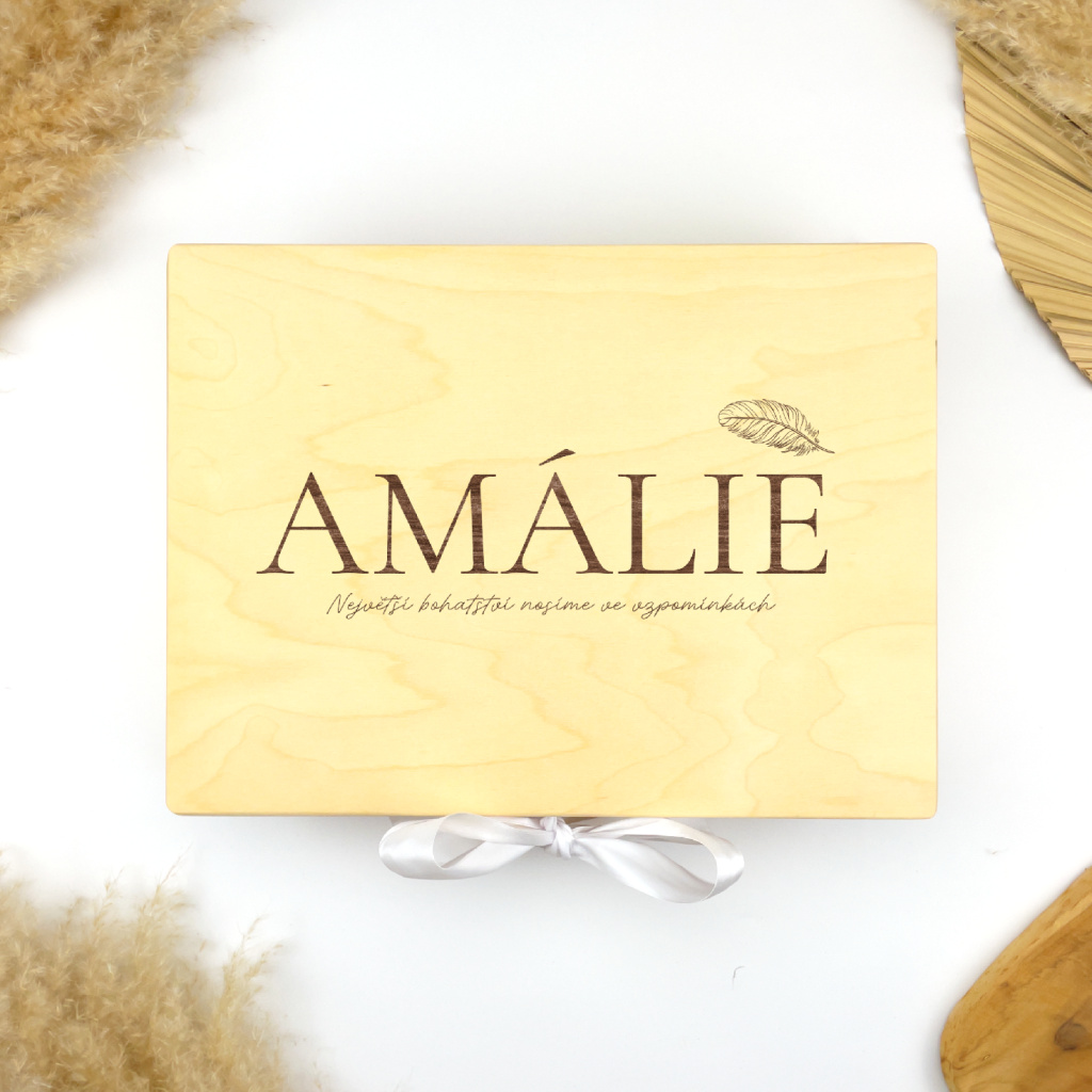 Dřevená vzpomínková krabička z přírodního dřeva: Tato krásná krabička poslouží jako místo pro uchování vzpomínkových předmětů miminka. První botičky, ulztrazvuk, fotografie. Opravdu prostorná krabička má rozměry: 40cm na délku, 30cm na šířku a 13,5cm na výšku.