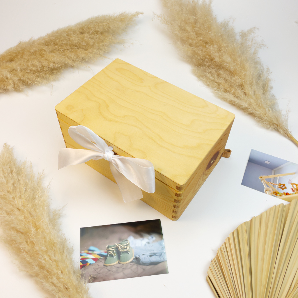 - Elegantní dřevěnou krabičku, která dodá celému dárku výjimečný nádech a později poslouží jako schránka na vzpomínky – první fotky, přáníčka, obrázky od vnoučátka nebo jiné poklady srdci nejbližší.