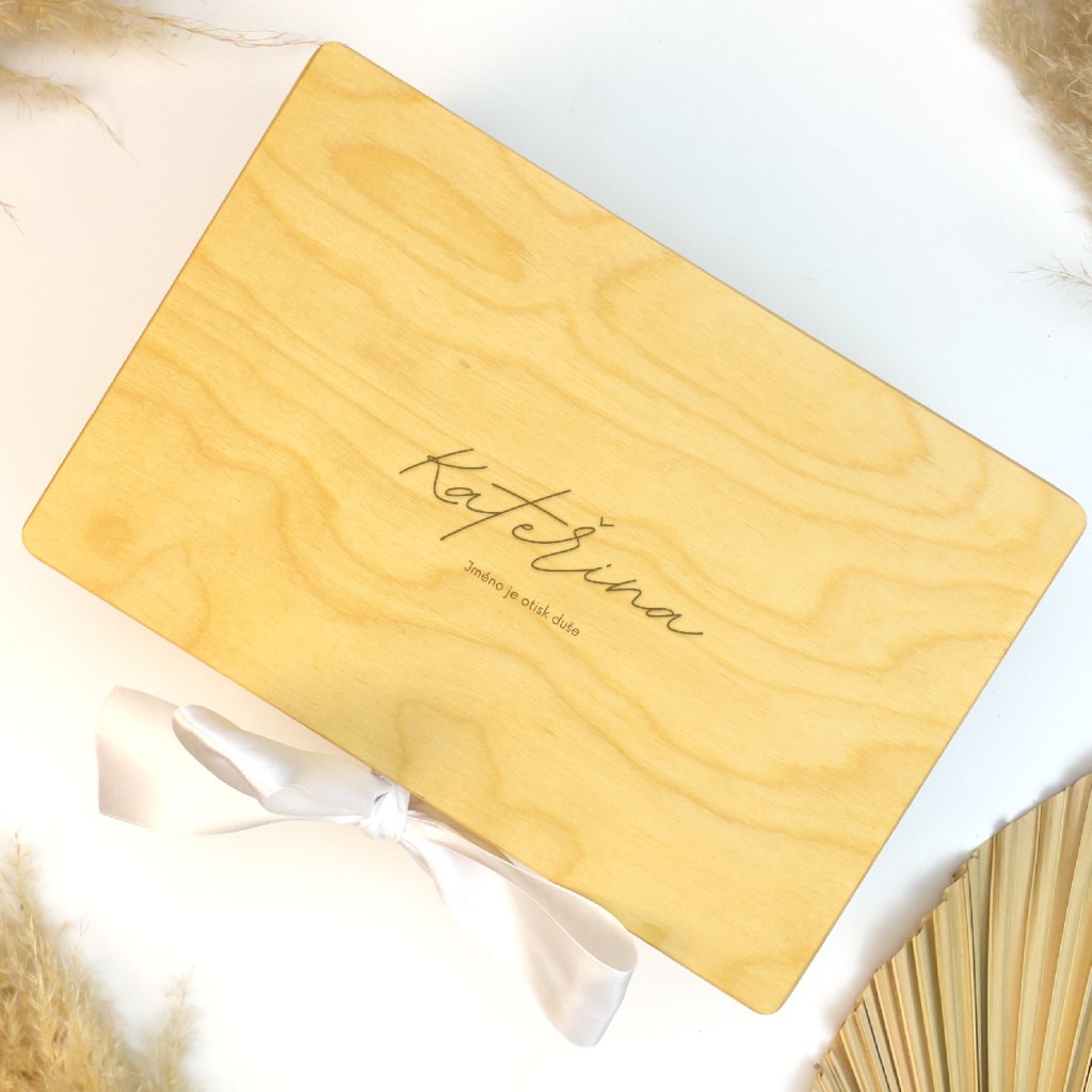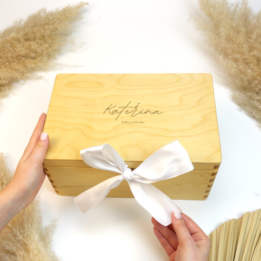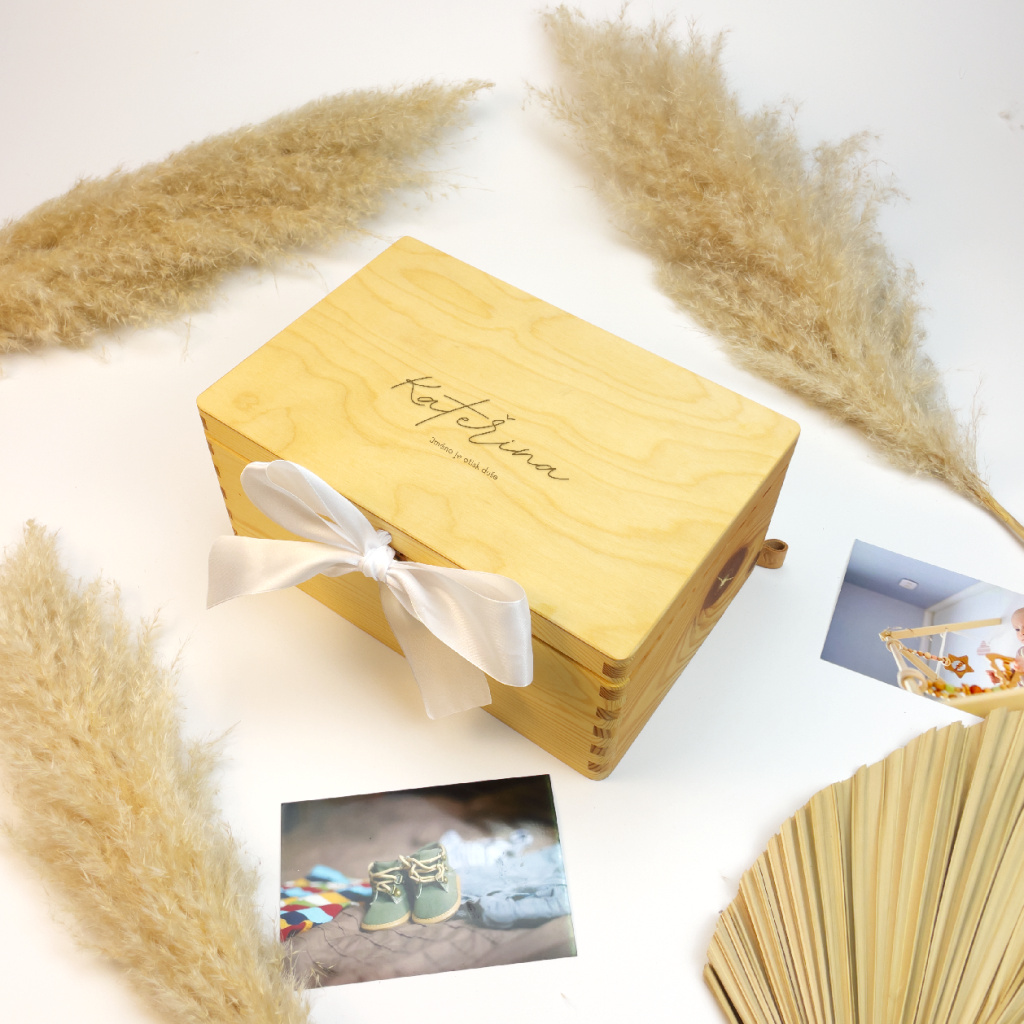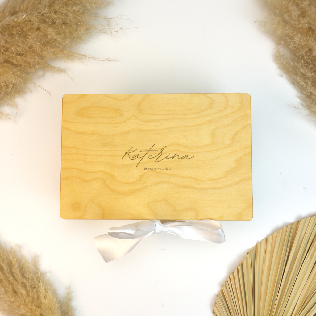 Dřevěná krabička na vzpomínky s gravírováním jména je krásným a osobním místem pro uchování vašich nejcennějších vzpomínek. Díky gravírování jména vznikne jedinečný personalizovaný dárek, který potěší jako památka na důležité životní okamžiky.