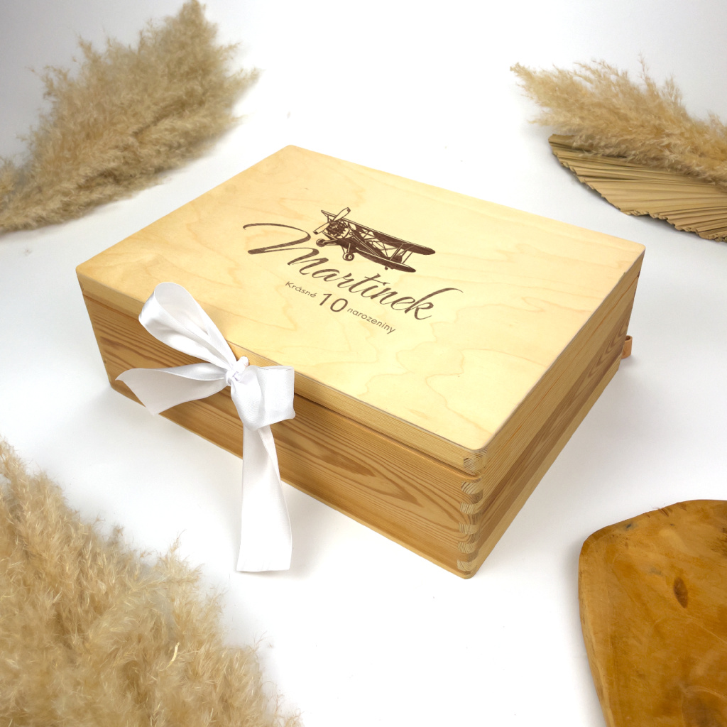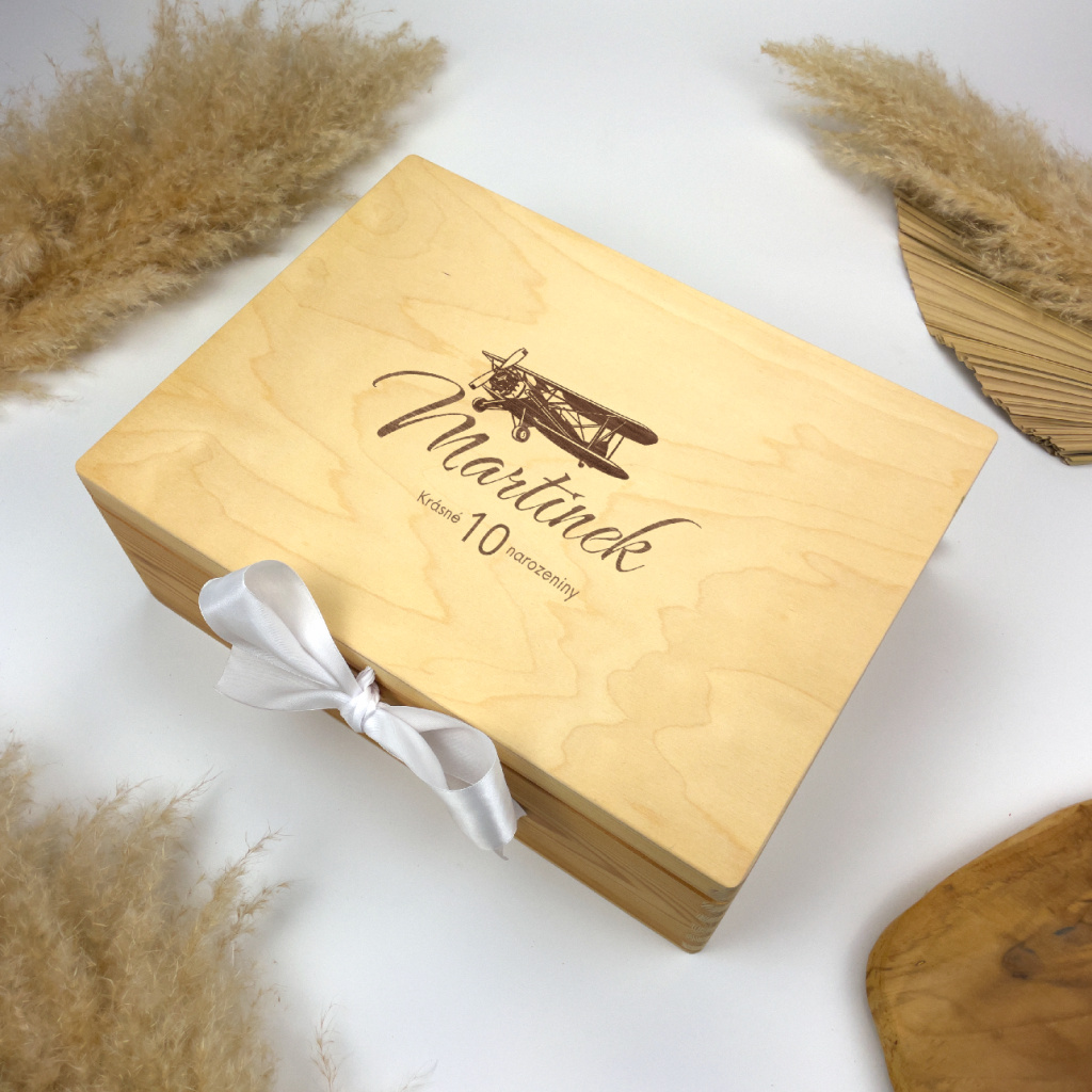 Narozeninový dárkový box s gravírováním – přírodní s mašlí
