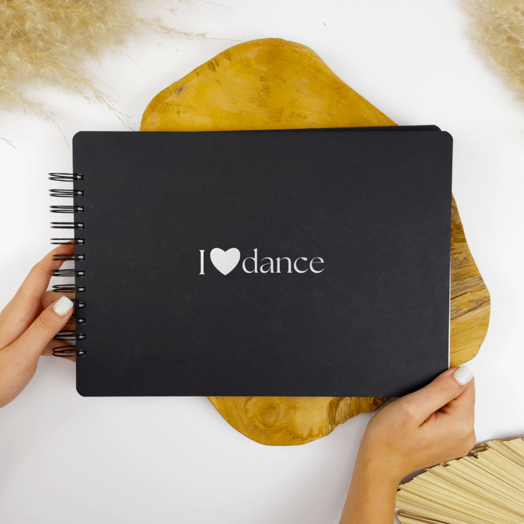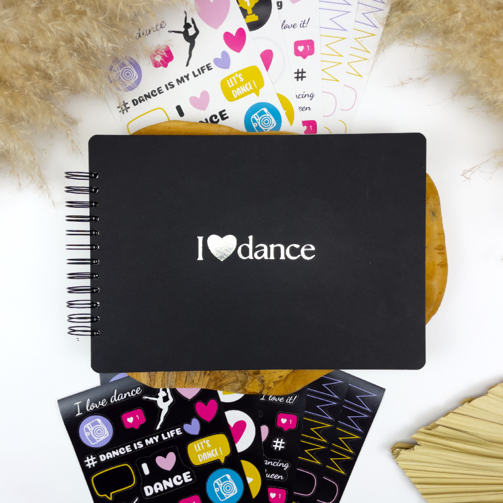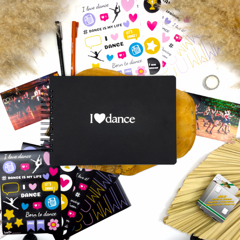 Každý taneční okamžik si zaslouží své místo. Taneční fotoalbum I Love Dance se samolepkami je ideální scrapbook pro zaznamenání tréninků, soutěží i vystoupení. Taneční album je také skvělým tipem na dárek. Potěší každou tanečnici, kamarádku, učitelku tance nebo celou taneční skupinu. Elegantní černý design a kroužková vazba z něj dělají originální památku, ke které se budete rádi vracet i po letech.