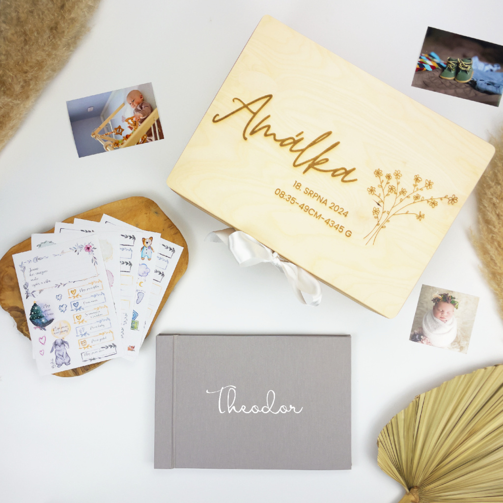 Narození děťátka je jedním z nejvýjimečnějších momentů v životě. Vytvořte mu vzpomínku, ke které se budete společně s láskou vracet. Toto personalizované fotoalbum se jménem miminka je ideálním místem pro uchování Vašich nejcennějších zážitků - od prvního úsměvu až po první krůčky.