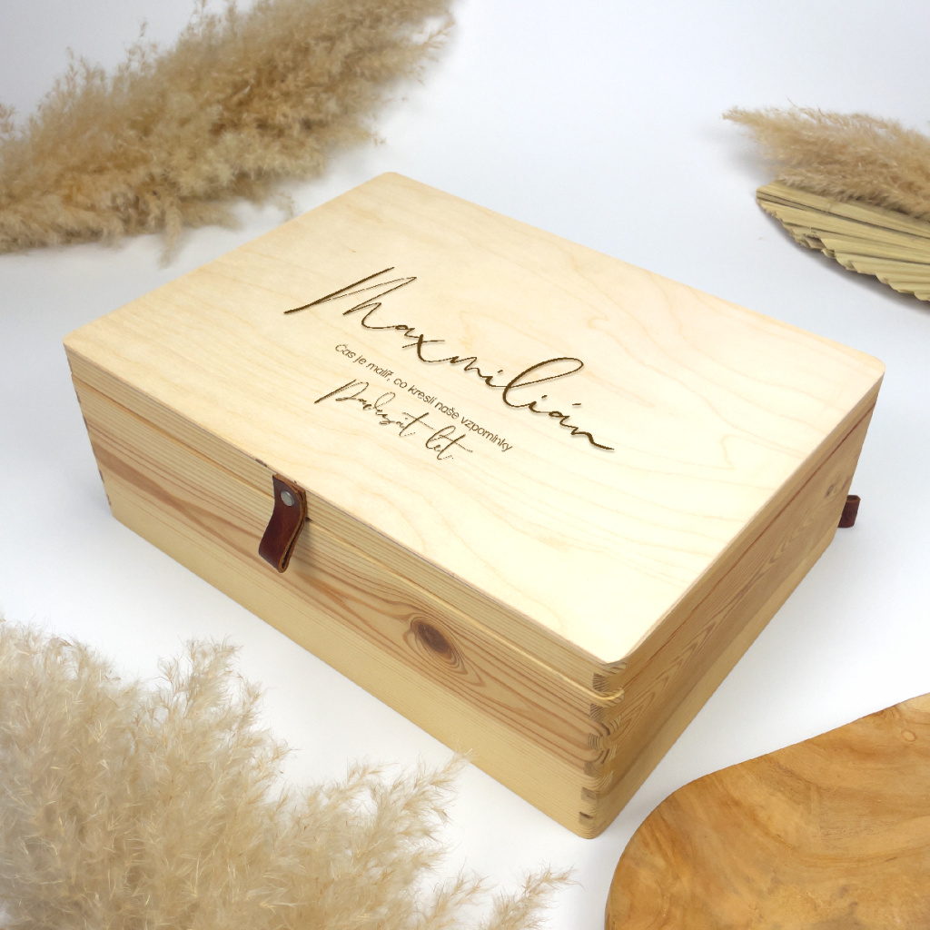 Uchovejte si vzácné vzpomínky na narozeninovou oslavu v naší elegantní dřevěné krabici. Ideální pro ukládání fotografií, přáníček, drobných dárků nebo jiných pokladů, které vám budou připomínat krásné chvíle. Krabička se zavírá koženým poutkem a magnetem.