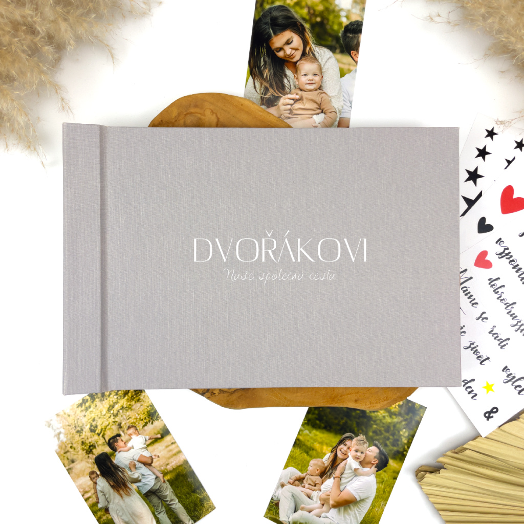 Personalizované rodinné fotoalbum s příjmením rodiny je místem, kde uchováte všechny společné okamžiky - od narození dětí, rodinných oslav až po každodenní chvíle. Elegantní design a možnost vytvořit vlastní rodinnou kroniku z něj dělají originální dárek k narozeninám, pro rodiče, prarodiče i novomanžele.