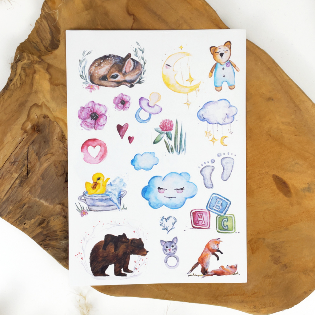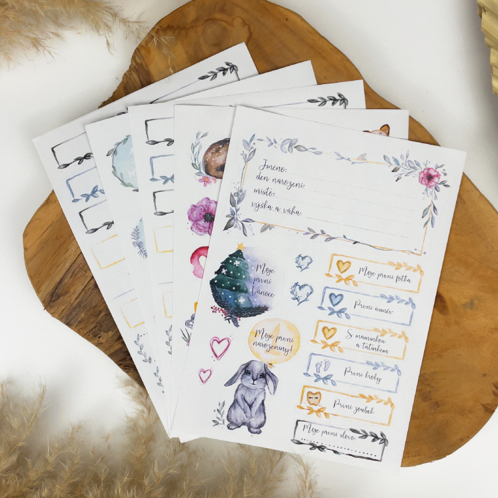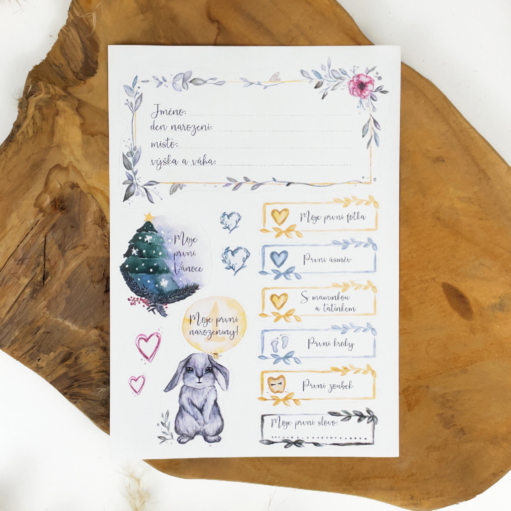 Nádherné ručně malované samolepky pro miminko do fotoalba. Vhodné pro pvní album pro miminko a jeho zdobení a scrapbooking.