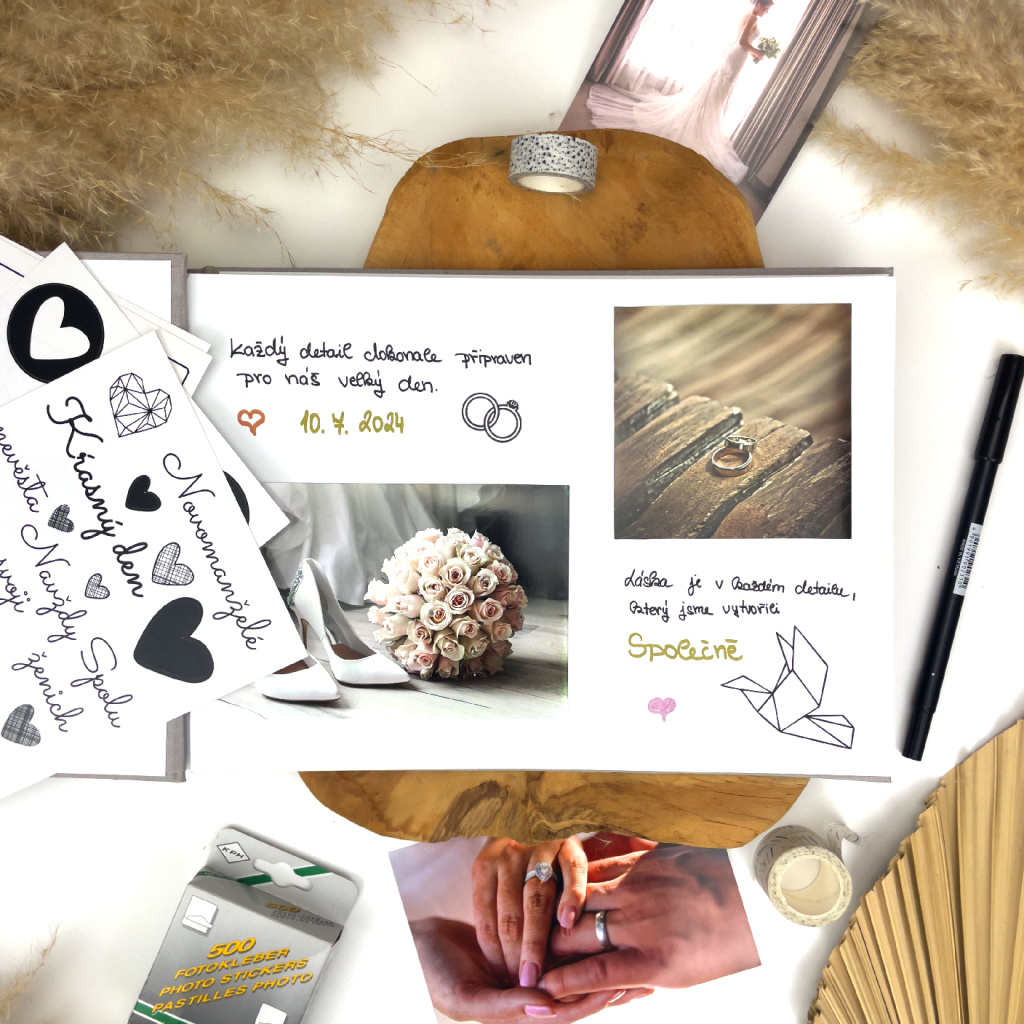Hledáte originální způsob, jak uchovat všechny kouzelné chvíle ze svého svatebního dne? Toto svatební fotoalbum se jménem je ideálním spojením fotoalba a svatební knihy hostů v jednom. Můžete do něj vložit nejen fotografie, ale i osobní vzkazy, podpisy a přání od svatebních hostů. Vznikne tak svatební kniha vzpomínek, ke které se budete po letech s láskou vracet.