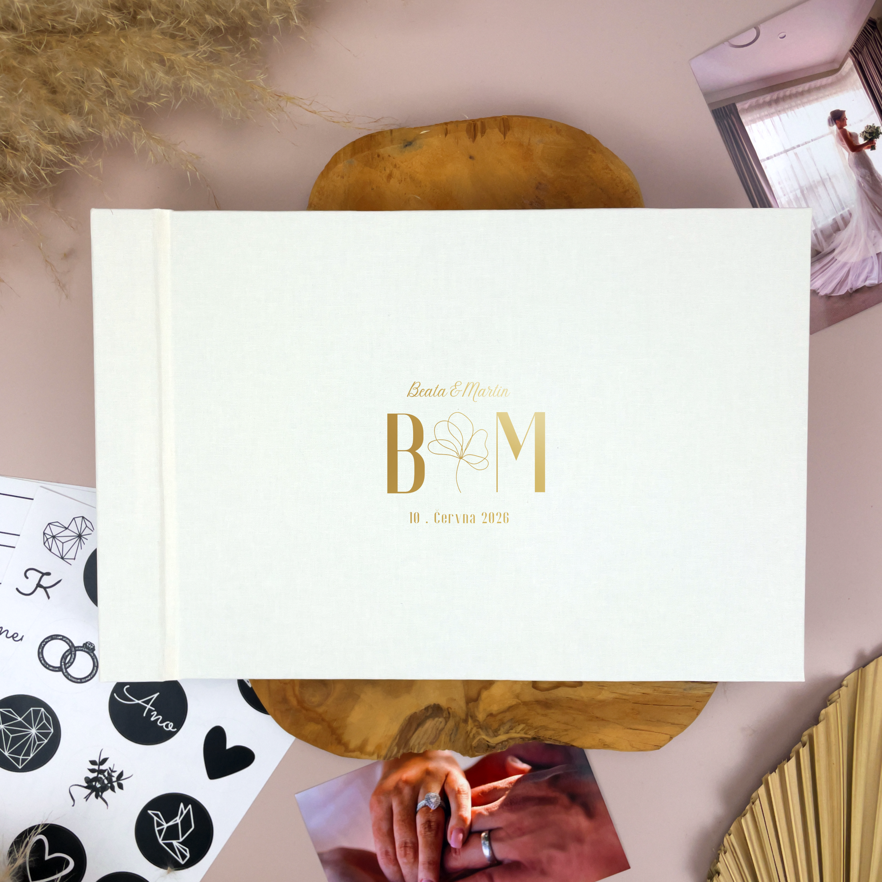 Váš svatební den je jedním z nejdůležitějších v životě – a zaslouží si místo, kde budou vaše vzpomínky uchované navždy. Toto svatební fotoalbum se jménem je ideálním prostorem pro fotografie, zápisky a zážitky z vašeho velkého dne.